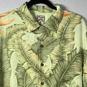 Montego Mon Short Sleeve Men’s Large Shirt Tropical Leaf Green Orange Silk