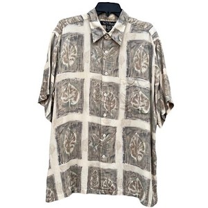 Tori Richard Silk Blend Hawaiian Shirt Brown Leaf Large