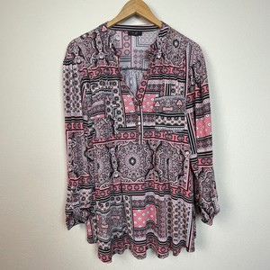 Cocomo Woman Pink Black Paisley Print Quarter Zip Long Sleeve Tunic Top 3X