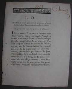 Loi relative à ceux prévenus d’avoir trempé dans la Conspiration du 10 août.1792