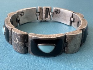Vintage RARE Navajo Turquoise Inlay .925 Sterling Silver Link Bracelet 108 gr