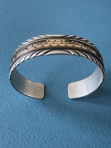 Antique Navajo Mark Yazzie .925 Sterling Silver 1/20 12k GF Cuff Bracelet 31.9gr