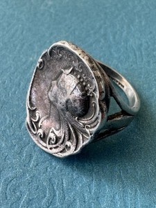 Antique RARE 1870 Victorian .925 Sterling Silver Warrior Lady Ring Size 8”