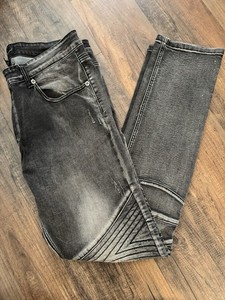 UNITED FREEDOM MEN’S 38x32 MOTORCYCLE MOTO BIKER JEANS BLACK DISTRESSED