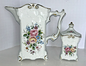 Gerold Porzzellan Porcelain Rose Floral Gold Trim Tea Pot & Sugar Bowl With Lid
