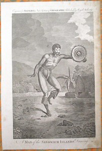 1789 Bankes engraving ~ A Man of the Sandwich Islands Dancing ~ Hula HAWAII