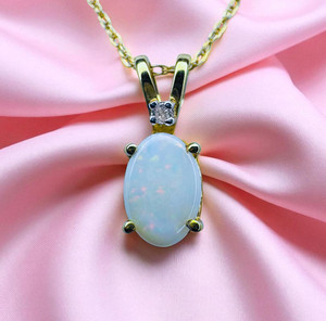VINTAGE- 10K Gold -Natural Australian Opal & Diamond Necklace 18" -White Opal-1g
