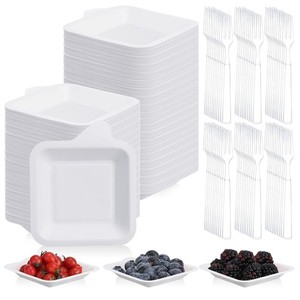 200 Pcs 4 Inch Square Paper Dessert Plates with 200 Pcs Plastic Forks Disposa...