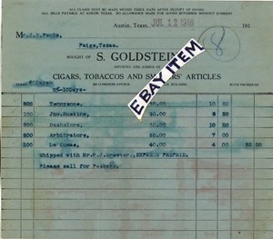 I have been buying and selling ephemera for 25 years. I sell letterheads billheads advertising pages trade cards prints posters catalogs ads photographs real photos post cards stock certificates revenue stamped paper bank checks etc. I have a Texas blues music band. www.texasjohnnyboy.com