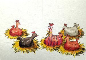 Art Folding Greeting Card Flap Card Chicken Roosting Chicks Eggs Sophie Turrel