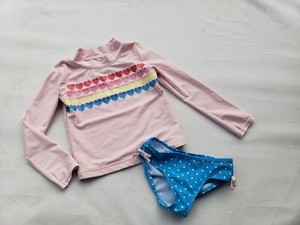 Carters Girls Swimsuit Rash Guard Size 4 5 Heart Polka Dot 2 Piece