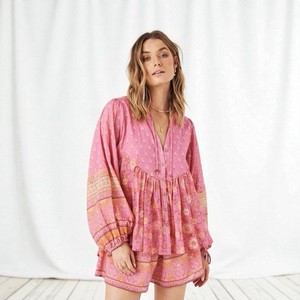 Spell Lovebird Mini Dress Red Size S Small Floral Button Front Babydoll