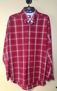 Men’s Tommy Hilfiger Button Down Dress Shirt Red Plaid Size Medium? Long Sleeve