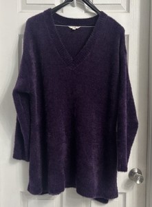 Terra & Sky Deep Purple Fuzzy V-Neck Knit Sweater Size 2X NWT
