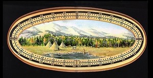 CRIBBAGE BOARD by Sharon Sharpe "AUTUMN TIPI CAMP"