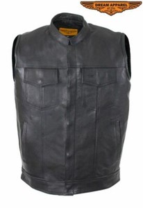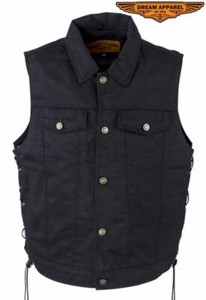 Men’s Motorcycle Black Denim Club Vest with Pockets Folded Collar & Hidden Snaps RM 231.45 to RM 265.12