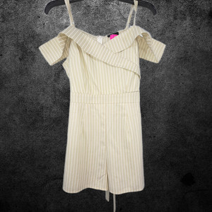 NWT Milk and Honey Women Beige Striped Romper Sz - Medium