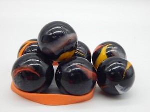 A Set Of 5 - 1” Vintage Shooter & 1.25" Cat’s Eye Glass Marbles Orange/Red E539