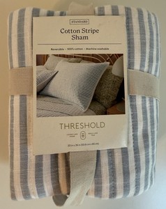 Threshold Standard Reversible Sham Blue and White Stripe 100% Cotton