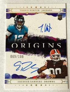 Travis Hunter Shedeur Sanders Rookie /100 Dual Auto On Card 2025 Panini Origins