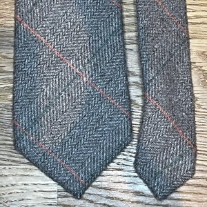 UNBRANDED TWEED MENS GREY CHEVRON CHECK TWEED WOOL BLEND TIE Y4