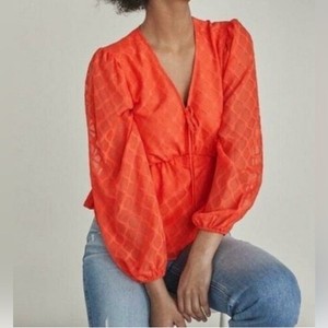 Elizabeth and James Women's Orange Textured Long Sleeve Blouse Size Small