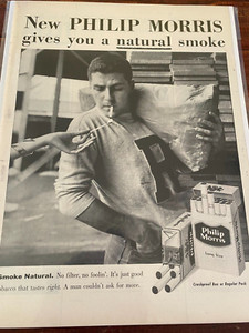Vintage 1957 Philip Morris Cigarettes Lumber Yard Worker ad