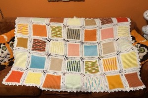 VTG Crochet Blanket Afghan MCM 70s White Colorful Orange Summer Spring Cute