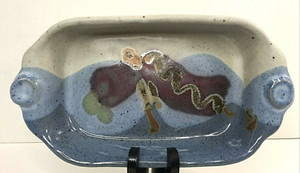 Tom Chamberlain Art Pottery Stoneware Tray Casserole Baking Dish Blue Purple EUC