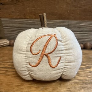 Primitive Harvest 6” Monogram Cloth Tan Pumpkin Initial Letter “R” Fall Decor