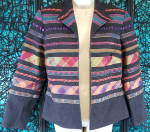 COLDWATER CREEK AZTEC BLAZER JACKET WOMENS 6 PETITE OPEN FRONT LINED COWBOY CHIC