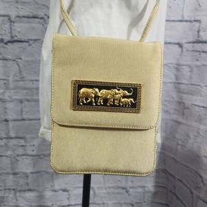 Vtg Gold/Yellow Satin Mini Crossbody Bag With Elephant Decor & Snap Closure