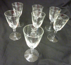 VTG SET OF 7 ARCOPAL FRANCE VICTORIA PATTERN WINE GLASSES FLORAL 6" TALL 6 OZ