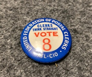 United Federation of Postal Clerks CLERKS THINK STRAIGHT – VOTE 8 AFL-CIO Button