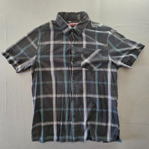 Northpoint Shirt Men XL Black Teal Gray Plaid Short Sleeve Button Up Y2K Revival