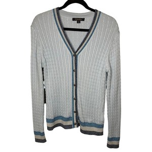 Brooks Brothers Blue Cable Knit Cotton Button Down Cardigan Sweater Size Large
