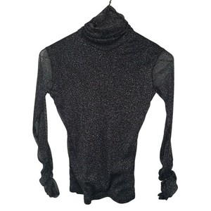 Black & Silver Shimmer Turtleneck Sheer Long Sleeve Ruched Top Women's Medium