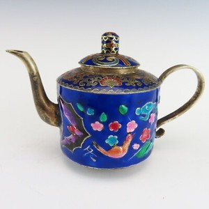 Antique Cloisonne Decoration Tibet Silver Carved Teapot