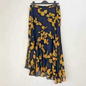 MInt Velvet Skirt Womens Size 10 Black Yellow Floral Asymmetric Midi Chiffon Zip