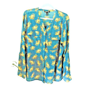 Womans Apt 9 1X Black Geometric Blouse Tunic Button Front Long Sleeve Pockets #3 RM 40.41Was: RM 50.51