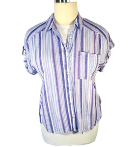 Terra & Sky - Women's 1X Blouse Purple, Blue, White Stripe 1 Pocket Button Up