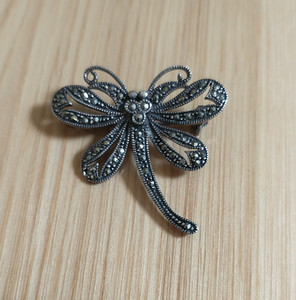 Vtg Art Deco Sterling Silver Marcasite Dragonfly Brooch Pin Marked 925, 5.16 gr