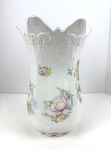 Brosnic Bone China "Victoriana" Made In England Fluted Edge Vase Floral Peonies RM 126.65Was: RM 211.07