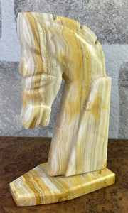 VTG Knight Trojan Horse Head Large Carved Onyx Marble Stone Bookend 8.5"