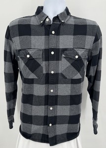 Everlane Men's Medium Flannel Button Down Shirt Cotton Black Plaid Long Sleeve