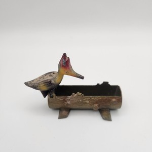 Rare 1950’s Woodpecker on Log Metal Cast Iron Toothpick Holder Dispenser Read