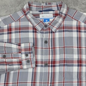 Columbia Shirt Mens Extra Large Gray Red Plaid Long Sleeve Button Down Pocket