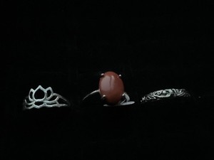 New x3 Silver Tone Ring Synthetic Brown Hessonite Garnet Lotus Boho Set Sz 8-9.5