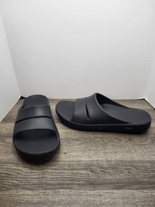 OOFOS Slide Sandals Mens 10 Black Recovery Comfort Slip On Beach Summer