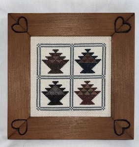 Wood Framed Counted Cross Stitch Completed Prairie Schooler Basket Pattern